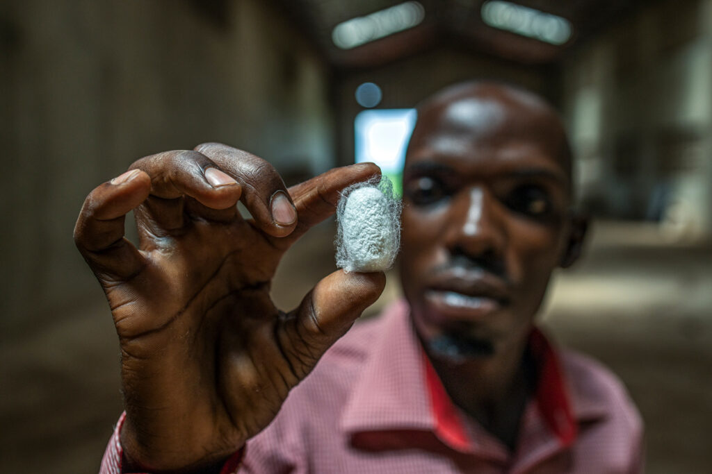 À 32 ans, Waiswa ne dirige pas une multinationale, mais il incarne l’esprit même d’une Afrique qui innove, qui se relève, qui rêve. Recruté par Seres Textile Company Limited, il supervise une usine de sériciculture au cœur des terres rouges d’Ouganda. Dans un entrepôt construit en 2019, les vers à soie s’installent, grandissent et promettent. Il attend, tel un capitaine son navire, l’arrivée de la machine d’extraction qui permettra enfin de transformer les cocons en or textile, ouvrant ainsi les portes de l’exportation.