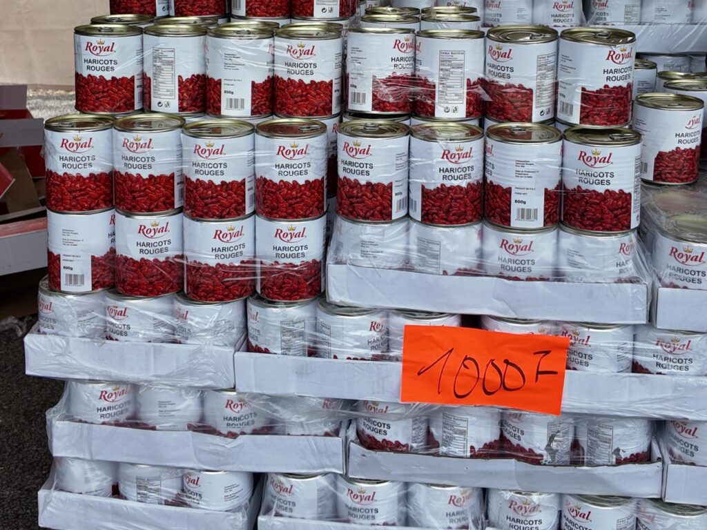 Les produits du quotidien enregistrent des baisses significatives. Le spaghetti (500 g) passe de 450 F à 350 F, le lait concentré (1 kg) de 1 250 F à 950 F, et la sardine (125 g) de 350 F à 275 F. Les tomates entières (400 g) descendent de 600 F à 440 F. L’huile (900 ml) est proposée à 990 F et le sel fin à 500 F, dans une même logique de maîtrise des coûts.