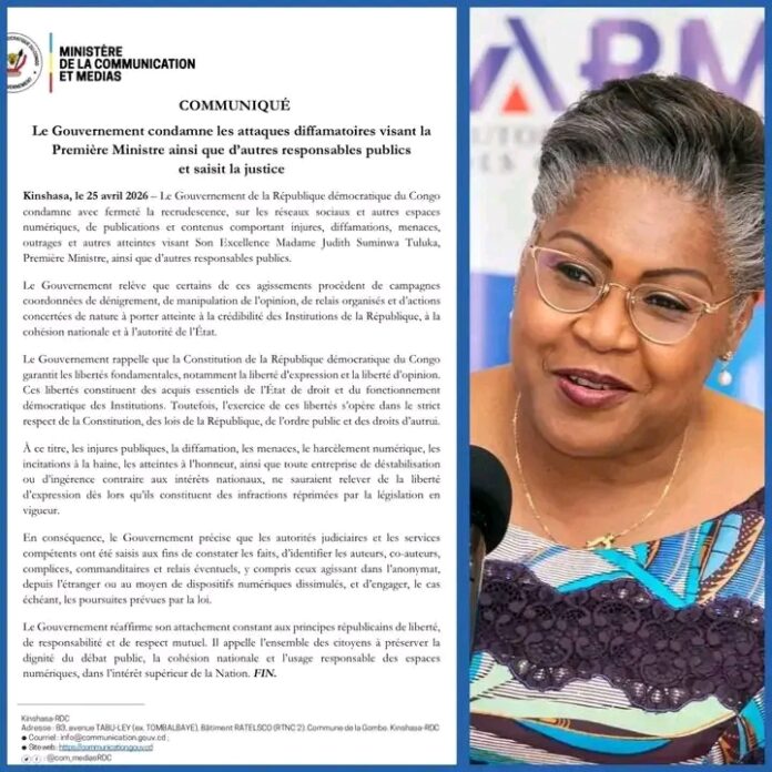 Le 25 avril 2026, le gouvernement de la République démocratique du Congo a réagi avec fermeté à une vague d’attaques verbales ciblant la Première ministre Judith Suminwa Tuluka. Ces attaques, largement diffusées sur les réseaux sociaux, ont été qualifiées de campagnes de dénigrement orchestrées. Elles visent à nuire à la réputation des institutions. Dans un cadre où la liberté d’expression est souvent mise en avant, le gouvernement insiste : cette liberté ne doit pas être un prétexte pour porter atteinte à l’honneur d’autrui.
